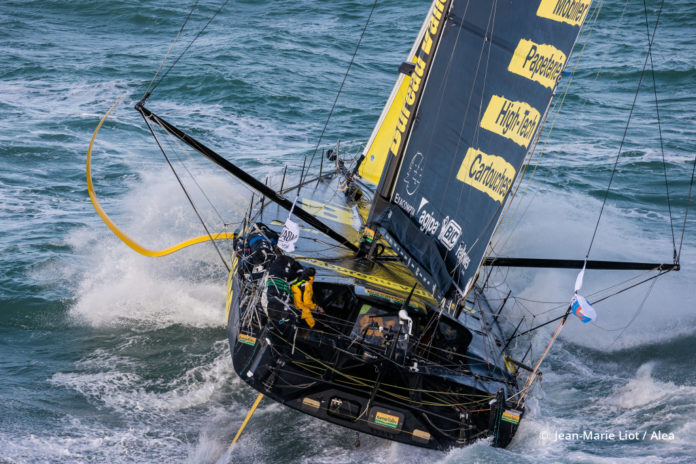 Côté Ocean Fifty aussi arrivent sur cette pointe Bretagne au ralenti. Sébastien Rogues et Matthieu Souben ont pris les devants, mais ne comptent que un petit mille d’avance sur leurs premiers concurrents. Les sept multicoques de cinquante pieds sont bien groupés et aucun jeu n’est encore joué sur ce passage stratégique puisque les fichiers météo restent encore incertain. “Une petite heure qu’on tourne en rond et depuis on a attrapé du vent. On ne sait pas si on va pouvoir s’en extirper rapidement, les fichiers météo sont incertains et on est encore en pleine hésitation.” Expliquait Quentin Vlamynck à la vacation ce matin. Il va falloir être dessus !