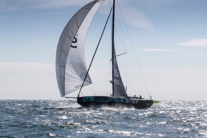 En Class40, l’option nord vendredi matin avait du plomb dans l’aile pour Groupe Snef, Crédit Mutuel et Amarris mais les 3 class40 sont repartis et ils peuvent désormais accélérer 2-3nds plus vite que les tenants de l’option sud – les italiens Alle Grande Pirreli et IBSA. L’option nord a repris de bonnes couleurs et apparaît plutôt gagnante. L’ETA est prévue jeudi prochain. Le suspens s’annonce magnifique et ce d’autant qu’il faudra additionner le temps de la manche 1 et manche 2 après jury. Il sera donc nécessaire d’attendre une majeure partie des arrivées pour avoir un premier classement général provisoire avant jury. Groupe SNEF compte 1h de retard et Amarris 1h19 sur Alle Grande Pirelli. A noter que Crédit Mutuel a démâté sur la première manche. Enfin on notera le joli coup du Class40 Influence 2. Andrea Fornaro et Benoit Hantzperg ont vu s’ouvrir l’option nord assez vite et se retrouvent désormais 18e mais à 54 mn d’Amarris.