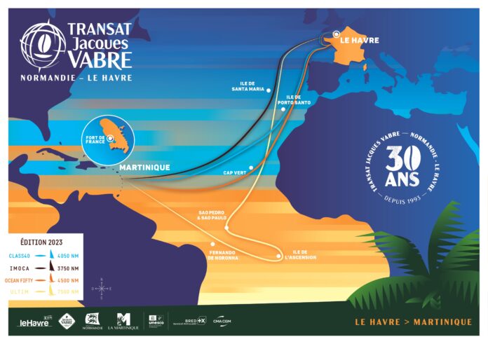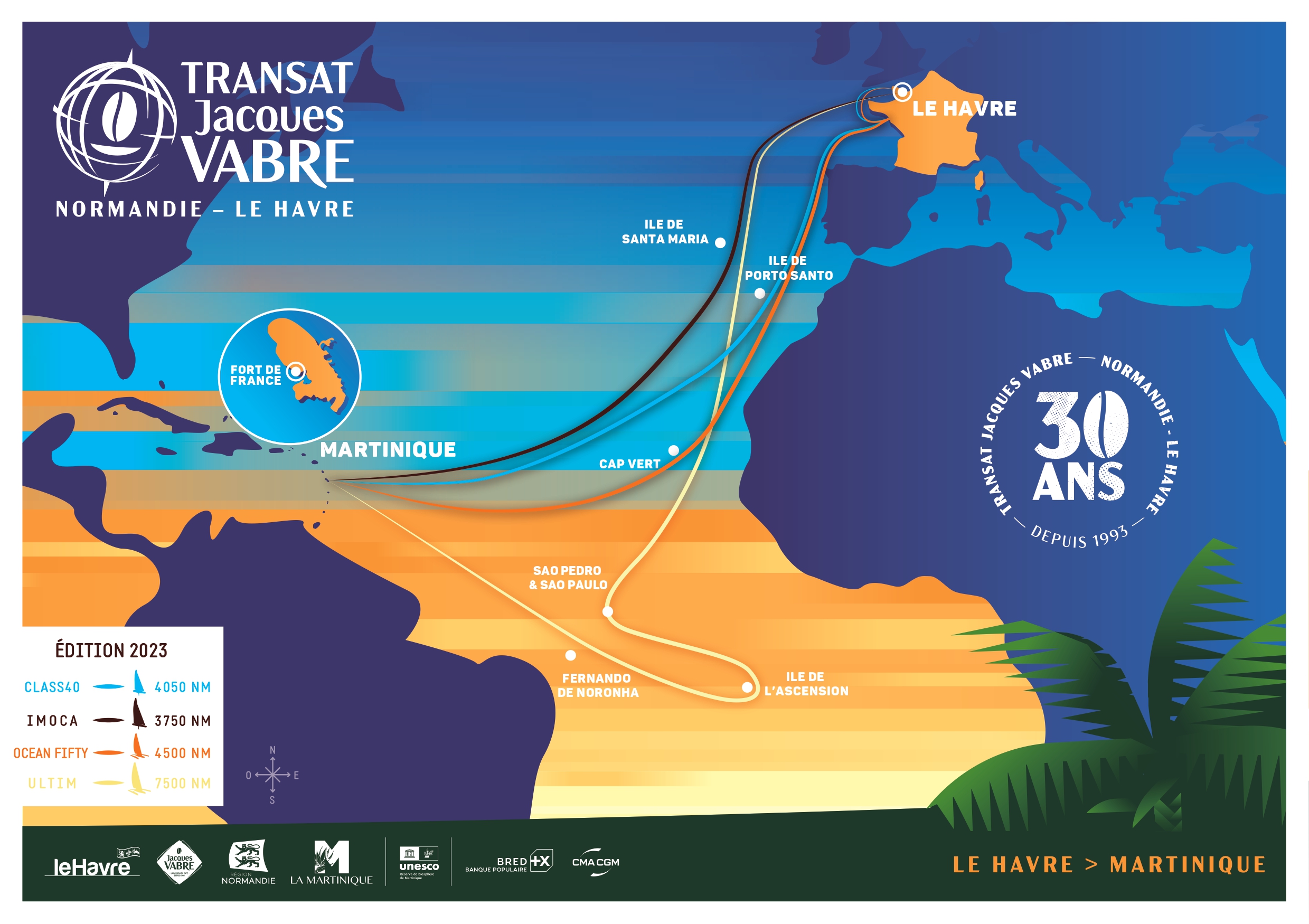 Les trimarans devront d’abord rallier une marque virtuelle dans le Nord de l’archipel du Cap Vert, dont ils éviteront les dévents, pour un parcours depuis Lorient d’environ 4 200 milles (7 778 km). Quant aux plus petits monocoques, c’est pour rejoindre d’abord l’île de Porto Santo à laisser à tribord, au Nord de l’archipel de Madère, qu’ils mettront les voiles. Devant leurs étraves : 3 750 milles (6 945 km) ; et la promesse de disputer une transat rythmée par les alizés, dans la plus pure tradition de la Route du café.