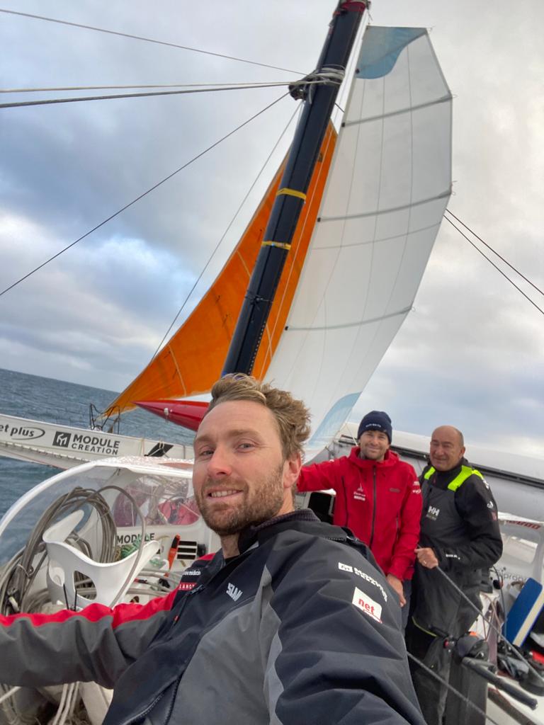 Les dégâts sont conséquents mais Luke Berry et son équipe comptent bien rallier la Bretagne par leurs propres moyens. « Nous avons chargé le flotteur sur le bateau à l’aide d’une grue et mis en place un gréement de fortune. Nous attendrons un créneau météo favorable pour rallier un port breton (soit une navigation d’environ 300 milles), détaille Luke. Il sera alors temps d’essayer de comprendre ce qu’il s’est passé et de réparer le bateau. A priori, il y aura essentiellement du composite à faire. »