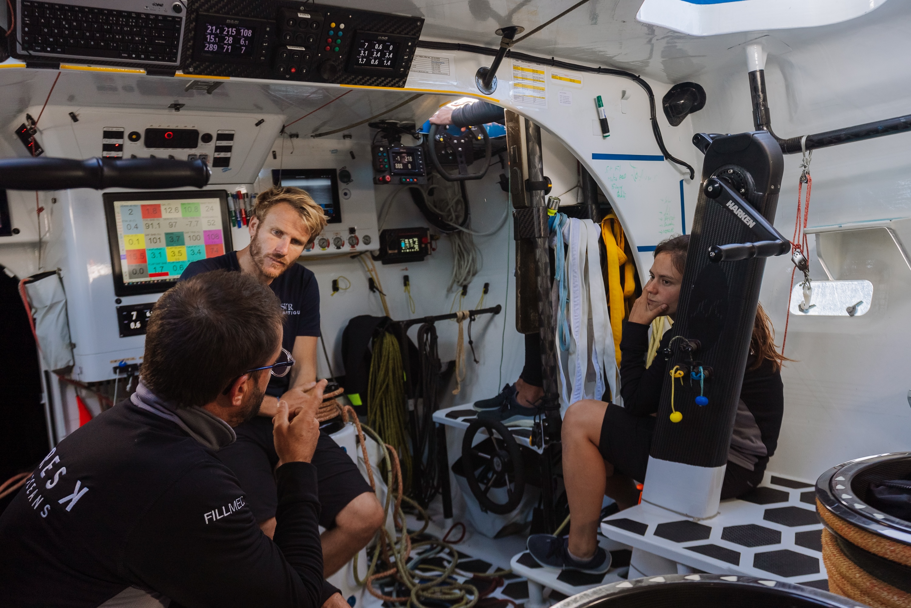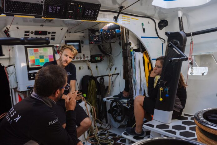 C’est pas un moment facile, ce ne sont pas des décisions simples à prendre. On peut toujours espérer continuer, espérer avoir des conditions favorables plus tard, espérer revenir et avoir des conditions favorables sur la ligne de départ, espérer avoir des conditions plus faciles dans l’Atlantique Sud… C’est à une des difficultés de ce Trophée Jules Verne, arriver à concilier deux Atlantiques avec des conditions météos favorables. Là on avait un Atlantique Nord extraordinaire, je pense qu’on était dans les temps, on imaginait être dans les temps du record absolu Ouessant- Équateur…On était rapide mais c’est pas tout, et il faut arriver à concilier ça avec l’Atlantique Sud. C’est un exercice compliqué et qui nous passionne. On est tous à fond, on est super motivés, forcément très déçus là maintenant de faire demi-tour, et en même temps plein d’espoir pour la suite et j’espère qu’on va pouvoir repartir très rapidement et dans les meilleures conditions.”