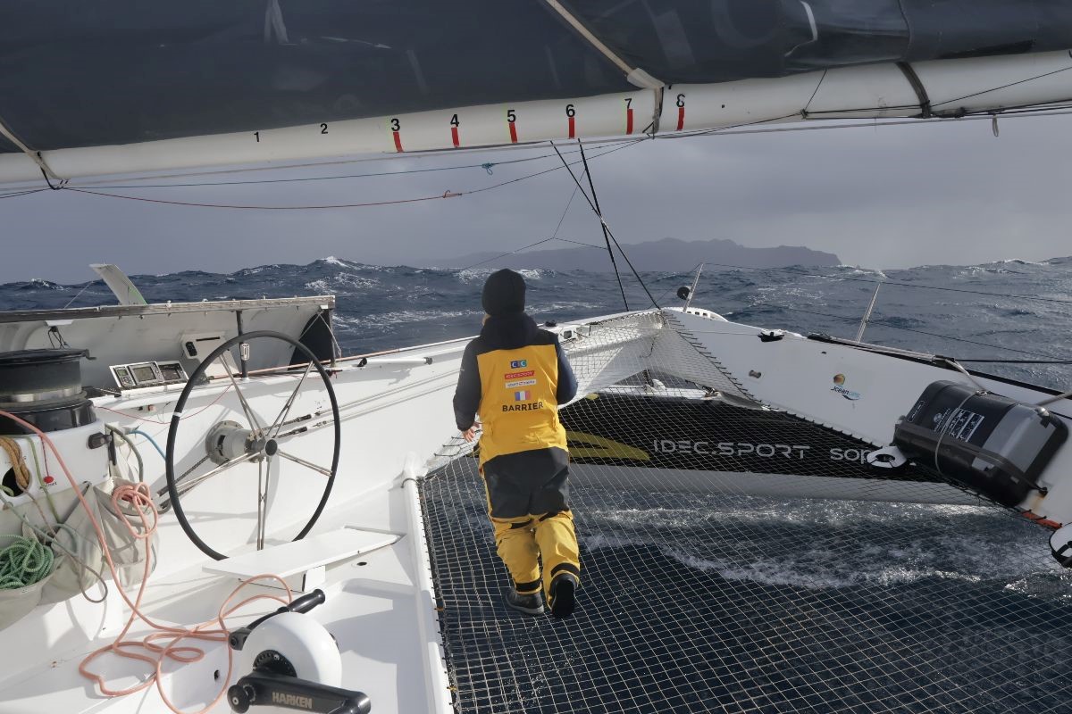 La grand voile du Maxi Trimaran IDEC SPORT s’est à nouveau déchirée jeudi soir durant une manœuvre d’empannage déclenchée pour contourner l’île de Terceira aux Açores. Cette même voile majeure s’était déjà déchirée en son milieu durant une manœuvre similaire hier matin, contraignant Alexia et ses navigatrices à affaler la toile jusqu’au niveau du deuxième ris. Elles comptaient rallier Ouessant et la ligne d’arrivée sous cette configuration au demeurant parfaitement adaptée aux conditions tempétueuses qui sévissent sur les 1 000 et quelques milles encore à parcourir. Elles vont désormais devoir se priver de ce qu’il restait de cette voile, et naviguer exclusivement propulsées par leur mât aile (30m2) et leurs voiles d’avant.