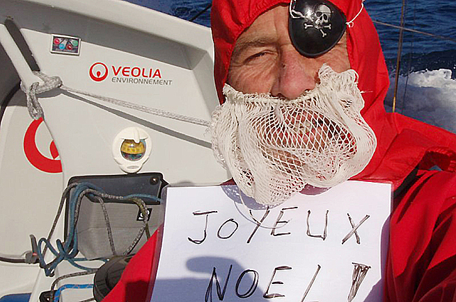 Roland Jourdain (Véolia Environnement), 2ème à 55,5 milles : « Ça va être moyen les agapes du réveillon avec ce qui nous attend. Va y avoir un regroupement de la flotte, et c’est bien que les autres reviennent, Noël est une fête de partage ! Mais mon bocal de foie de lotte préparé pas mon pote Marco va sans doute attendre un peu plus tard. Ça va « cartoucher » sérieux pendant un bout de temps et la mer ne va pas être propre. Mais on en est qu’au début du Pacifique, peut-être qu’ils sera sympa avec nous après… »