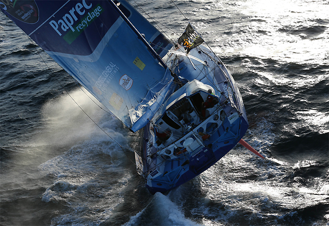 Pour autant devant, les choses ne seront pas forcément simples. Pour Jean-Pierre Dick (Virbac-Paprec 3), Alex Thomson (Hugo Boss) et Bernard Stamm (Cheminées Poujoulat), la course poursuite risque de comporter encore quelques figures de styles. Retrouver le bateau en vrac suite à un planté magistral dans une vague, peut révéler des caractères fort contrastés, du méthodique qui prendra patiemment le temps de tout remettre en état dans l’ordre, à l’énervé qui, à la manière du capitaine Haddock, s’en prendra à la mer entière et traitera les éléments de « coloquinte, courge » ou autre cucurbitacée.