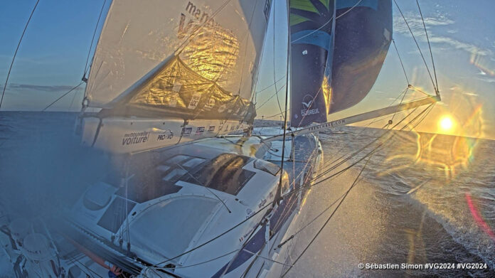 Dans la nuit, les leaders de la course ont franchi le cap Finisterre avec un vent qui a bien forci, marquant une étape clé dans ce début de Vendée Globe. Ce matin, Charlie Dalin sur Macif conserve la tête, mais Yoann Richomme – Paprec Arkea et Sam Goodchild (Vulnérable) ont réalisé une belle remontée et le talonnent prêts à saisir la moindre opportunité pour prendre la tête de la flotte.