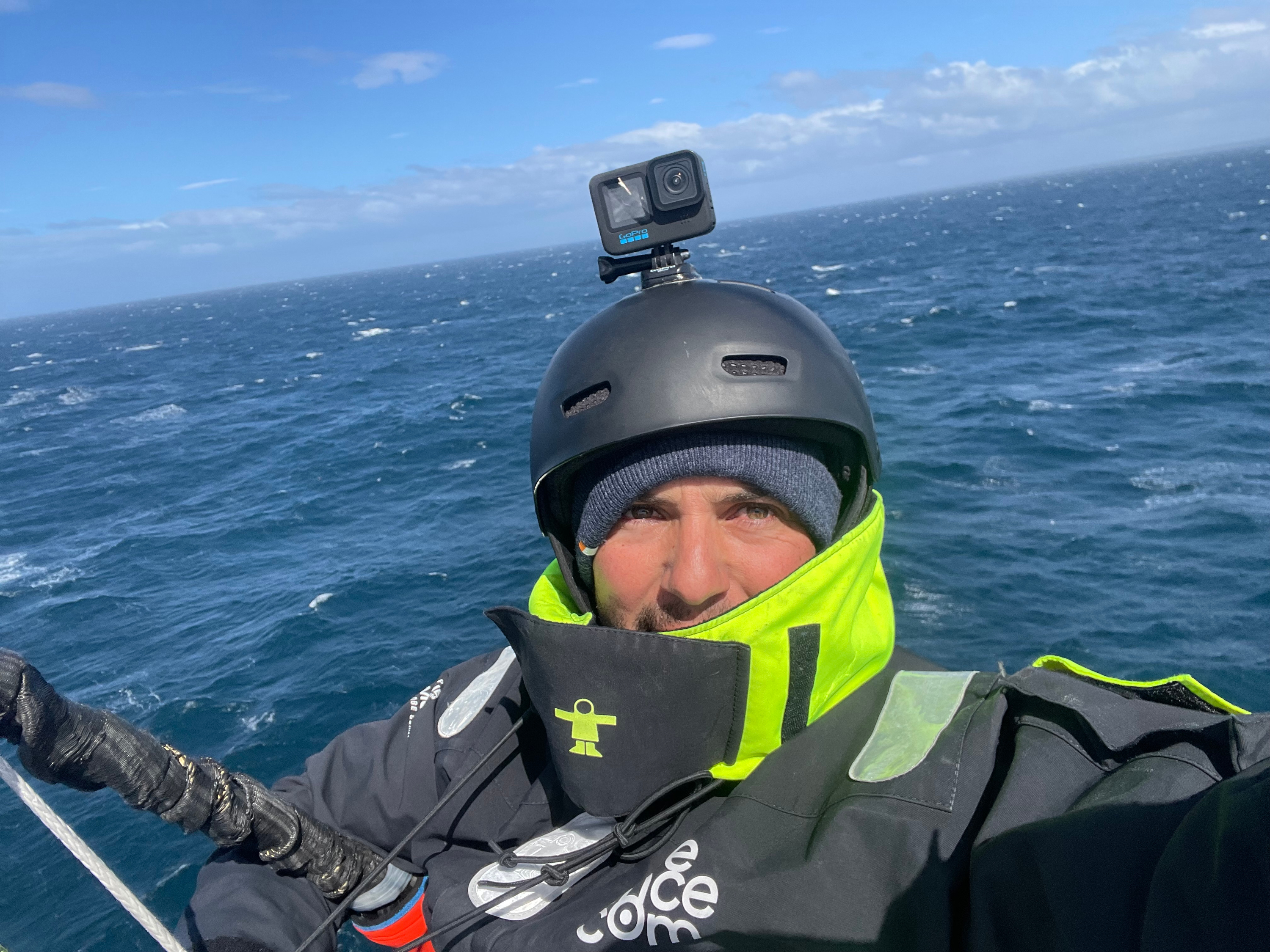 « C’était une sacrée mission ! J’ai entamé les réparations mais j’ai encore pas mal de trucs à finaliser. J’ai dû affronter une grosse dépression en milieu de semaine. Il y avait une vingtaine de nœuds et subitement, le vent est monté à 50 nœuds. À cet instant, je suis parti au lof et pendant 45 minutes, c’était impossible d’abattre. Mon J2 (voile d’avant) était délaminé, le mât tremblait dans tous les sens… Je pensais vraiment que j’allais démâter. Dès que le vent a baissé, je me suis activé à l’avant. Le bateau est parti en surf, j’étais sous l’eau, c’était l’enfer… À un moment, je ne savais plus quoi faire.