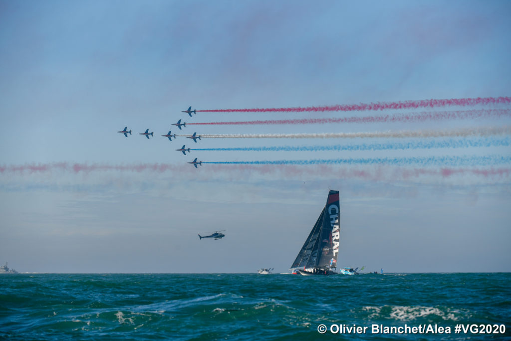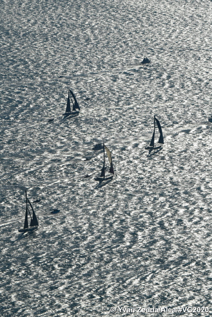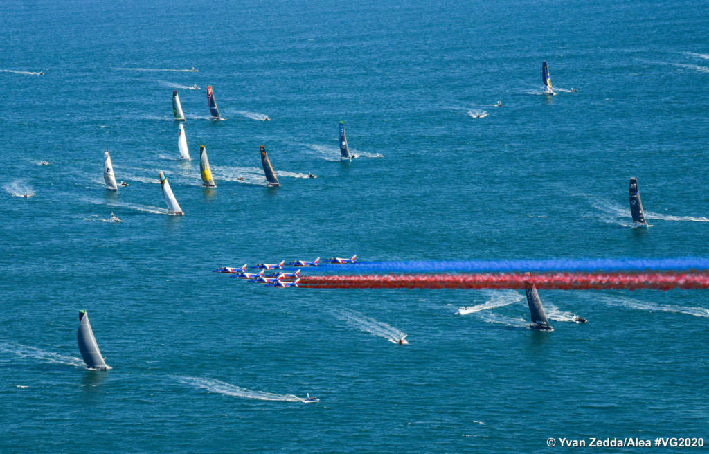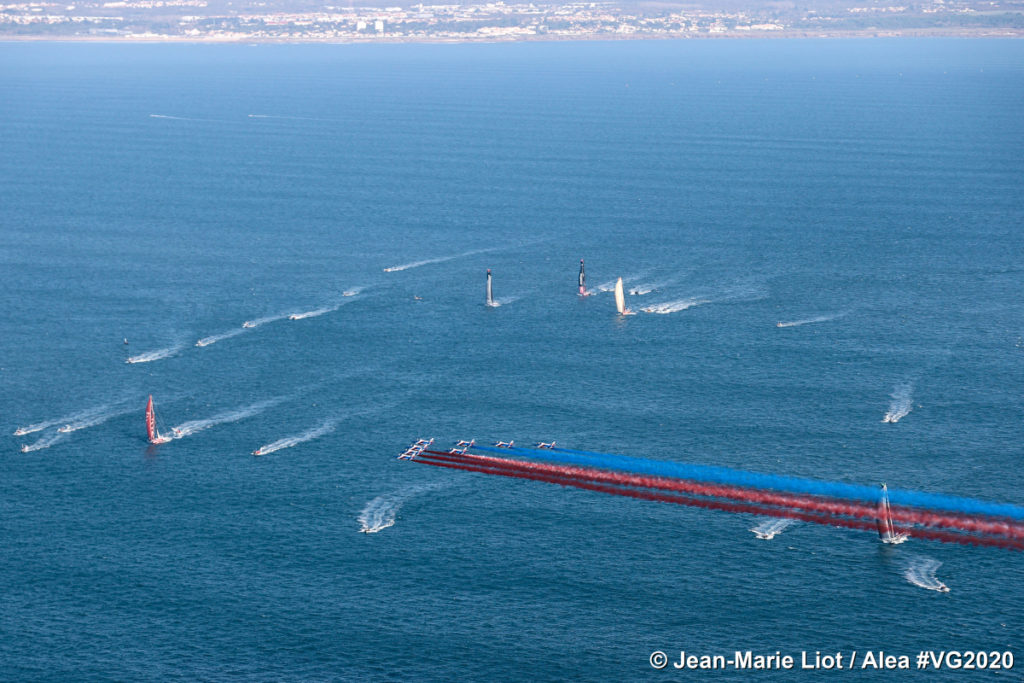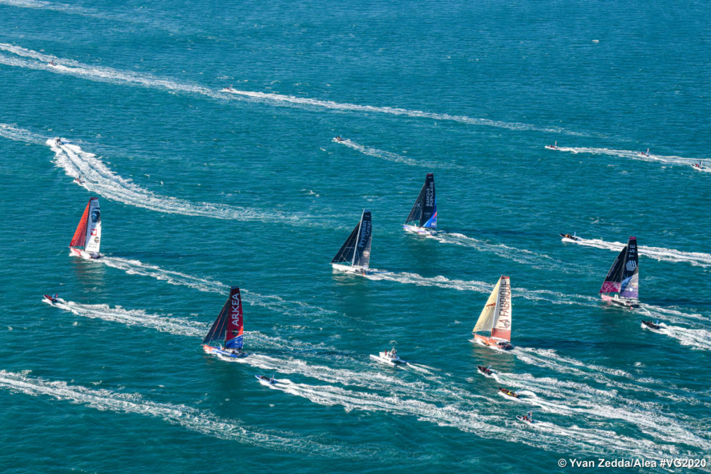 Fleet is taking the start of the Vendee Globe sailing race in les Sables d’Olonne, France, on November 8, 2020. (Photo by Yvan Zedda/Alea)