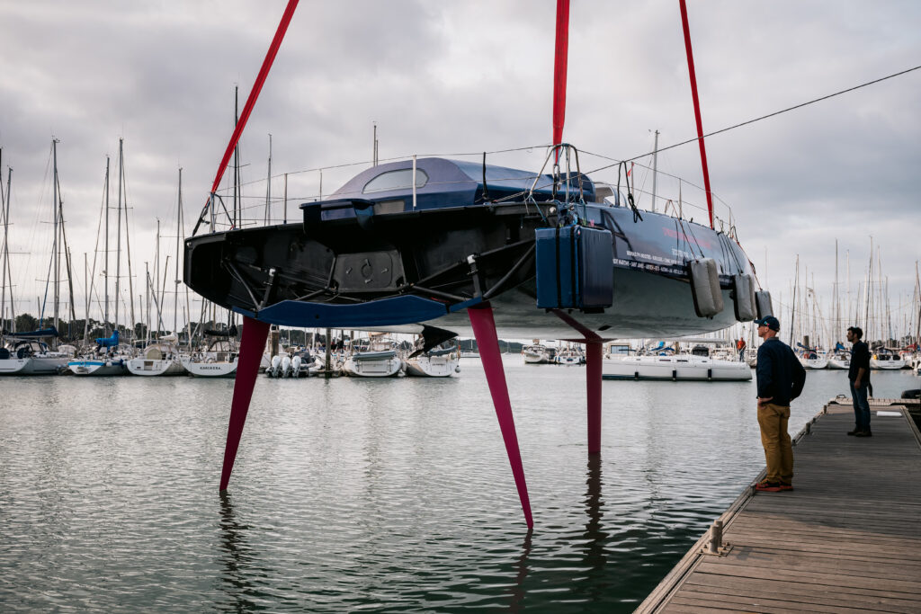 Armel Tripon a mis à l’eau son IMOCA Les P’tits Doudous à la Trinité-sur-Mer. Un plan VPLP construit au chantier DUQUEINE Atlantique avec du carbone déclassé pour Airbus et en titane récupéré dans les blocs opératoires pour l’accastillage. Le bateau a été décoré par le grapheur Cyril Kongo et se veut le porte-drapeau de l’engagement des soignants