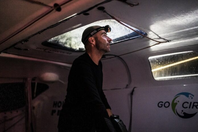 « Les conditions de vie sont assez compliquées à bord car la mer n’est pas forcément haute mais très courte. On a vraiment l’impression d’être dans le tambour de la machine à laver. Le bateau se fait secouer dans tous les sens. On part parfois en surf à 30 nœuds pour finir l’étrave dans la vague de devant et s’arrêter net ! Il faut se tenir sans arrêt car l’idée n’est pas de faire de vols planés dans le bateau. Même assis à mon siège à la table à cartes, je suis obligé de me tenir sinon, je vais voler du siège. Il faudrait presque que je m’attache au siège. Pour dormir, je ne t’en parle pas… Là, je viens d’essayer de me faire chauffer un plat. Par miracle, il est encore dans la popotte mais je ne sais pas pour combien de temps. C’est un peu raide ! » décrit le marin qui occupe la 6e place du classement et navigue toujours bord à bord avec Jérémie Beyou.