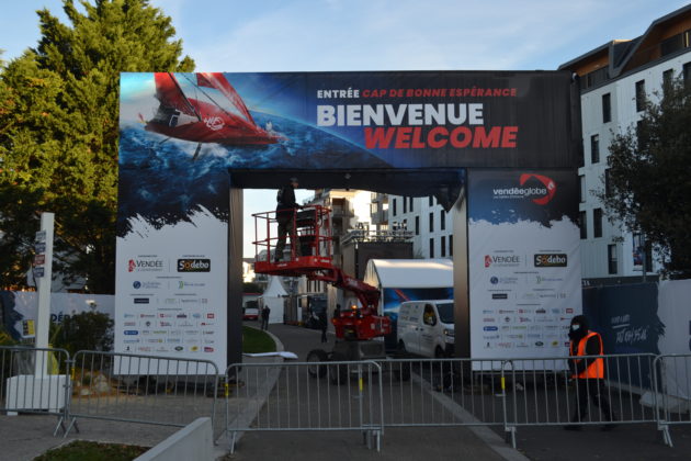 Inauguré ce samedi 17 octobre 2020 à 9h, Le village départ du Vendée Globe vient d’ouvrir ses portes pour trois semaines. Soumis à un protocole sanitaire strict, accessible uniquement sur inscription, il n’échappe pas à la crise sanitaire. Habituellement synonyme de fête pour le grand public et l’ensemble de la communauté voile, cet évènement sportif majeur avait généré beaucoup d’interrogations depuis le mois de Mars. Impressions, constats et points de vue d’organisateur, d’armateurs et de marins.