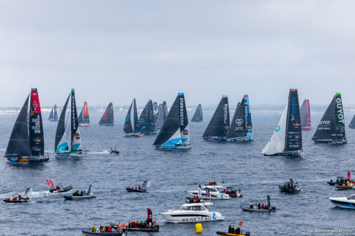 Pour l’anecdote, huit skippers ont franchi la ligne dans la minute suivant le top départ : des favoris – Thomas Ruyant et Sam Goodchild (VULNERABLE), Boris Herrmann (Malizia – Seaexplorer) -, des outsiders – Justine Mettraux (TeamWork-Team Snef), Maxime Sorel (V and B – Monbana – Mayenne), Paul Meilhat (Biotherm) et Benjamin Dutreux (GUYOT environnement – Water Family) – et un bateau à dérives droites (Monnoyeur – DUO for a JOB). C’est d’ailleurs Benjamin Ferré qui a été le plus rapide en la franchissant 11 secondes après le départ.