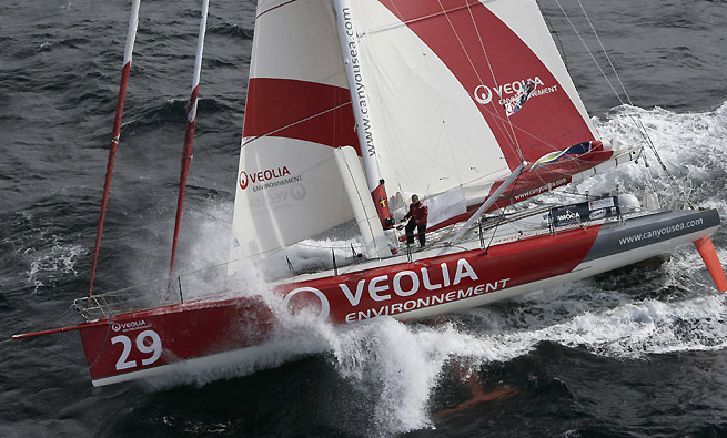 Parti le 5 août de Concarneau pour rallier la cité Ottomane, Veolia Environnement a profité du voyage pour lier l’utile à l’agréable. Au programme : « Beaucoup de vent dans le nez le long de l’Algérie, mollissant au nord de la Tunisie, une nuit de Pot-au-Noir sous des éclairs absolument incroyables où nous ne faisions pas les fiers, rencontre avec quelques très gros dauphins, un peu de recréations-baignades… et côté boulot, on note des progrès constants dans notre recherche de perfection dans la calibration d’instruments… sans oublier des retrouvailles fortuites avec Foncia puis Paprec-Virbac sur la route, pour nous rappeler que c’est bientôt la rentrée des classes ! » racontait Bilou « Ca va me faire du bien car j’ai fait un peu trop de terre ! Il est temps d’y retourner ! L’appel du large est revenu et ça tombe bien car on va aligner pas mal de milles d’ici la fin de l’année ! »