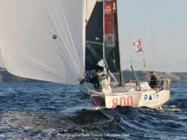 Sur le pogo Esprit 93, les Chombart naviguent en famille. Marine s’est embarquée avec son père Pascal pour courir le mini-Fastnet. Cette jeune journaliste a déjà à son palmarès une 10e place dans la Transat 6,50 2005 (1ère féminine).