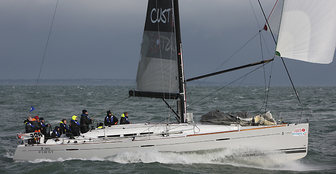 Ces conditions ont nécessité beaucoup de manoeuvres et de changements de voile, comme l’explique le barreur sur le Fair Do’s VII de l’équipe rouge britannique, John Greenland, "Les seules voiles que nous n’avons pas utilisées étaient le tourmentin et la voile de cap." Après avoir montré le chemin aux autres bateaux lors de la sortie du Solent hier, l’équipage britannique a dû se contenter de la sixième place à l’arrivée aujourd’hui. C’était le champion en titre, Géry Trentesaux sur son Lady Courrier pour l’équipe France Bleu, qui a remporté la course pour la classe 1 avec 15 minutes d’avance en temps compensé sur l’Antix Eile d’Anthony O’Leary et plus d’une heure d’avance sur le Tiamat/Alfa Romeo de l’Irlandais, Tim Costello. Réactions du Français, cet après-midi, "Nous n’étions pas aussi bien au départ, ni sur le premier bord au près, mais par la suite tout a fonctionné. Nous étions sous spinnaker, lorsque le vent a faibli, mais nous avons pu le garder en place jusqu’à 200 mètres avant la marque. C’était peut-être à ce moment-là que nous avons gagné la course." Les équipages confrontaient la partie la plus épuisante du parcours à l’aube ce matin avec du louvoyage sous les falaises au sud de Poole. Fair Do’s VII naviguait à quelques pieds de la Pointe, tandis que sur le Jump Juice des Irlandais, Conor et Denise Phelan, ils ont dû effectuer 78 virements de bord en 70 minutes à cause du fort courant provoqué par la marée. Même sur Lady Courrier, lors d’un problème avec un manœuvre, ils étaient contraints de réagir rapidement afin d’éviter de foncer vers la falaise.