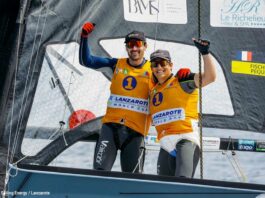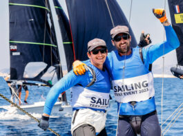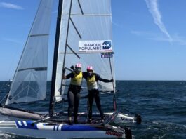 Avec Marie Riou, Bily Besson enfile le maillot jaune du leader en Nacra 17 avec une seule certitude, ils ne peuvent pas monter plus haut alors que – si les choses tournent mal – ils peuvent dégringoler jusqu’à la septième place. Les Suédois Shuwalow et Klinga sont en embuscade et les autres Français peuvent eux aussi convoiter le podium à l’image de Moana Vairaux et Manon Audinet, troisièmes du général. Car c’est peut-être la meilleure surprise de cette semaine, le cata français fait école puisque Matthieu Vandame et Audrey Ogereau sont eux aussi dans le top 10 et que l’équipage Cammas / de Turckheim a montré lors des qualifications sa capacité à aller vite, et au bon endroit.