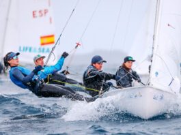 Chez les 470, plusieurs équipages sont aux avant-postes. Pierre Leboucher et Nicolas Le Berre occupent la troisième place à égalité avec Sofian Bouvet et Jérémie Mion, revenus de l’au-delà sur la deuxième manche du jour. En féminine, Camille Lecointre et Mathilde Géron sont elles aussi deuxièmes, derrière les Brésiliennes Oliveira et Barbachan qui ont tout raflé depuis le début de l’année.